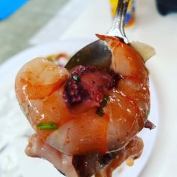 Delicious mariscos, absolutely hit the spot! That aguachilles were 10000%. Would def return!! The restaurant staff was super attentive and came to check on our table frequently! The neon signs were also a rad touch for the location!
